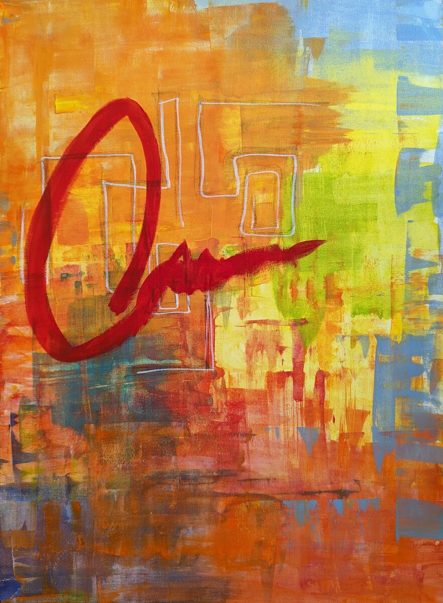 Playing with paint - Only 3 colours , applied with brush, spatula and roller