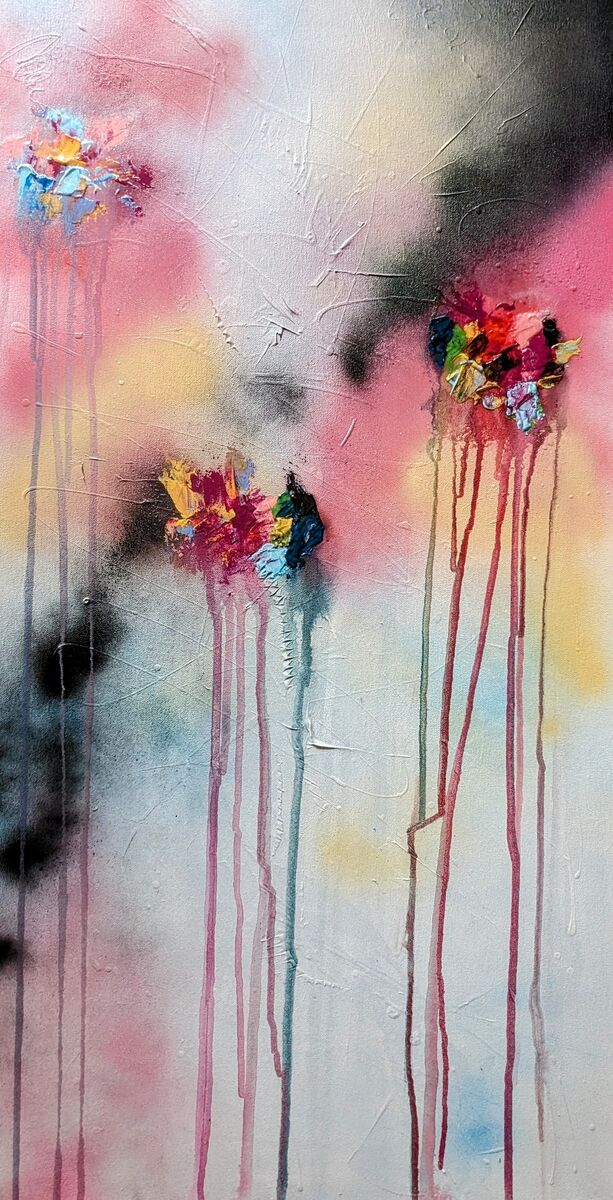 Playing with different shades of pink using a nail brush to apply the paint and pouring medium to let the paint flow. A lot of fun was had creating this piece.