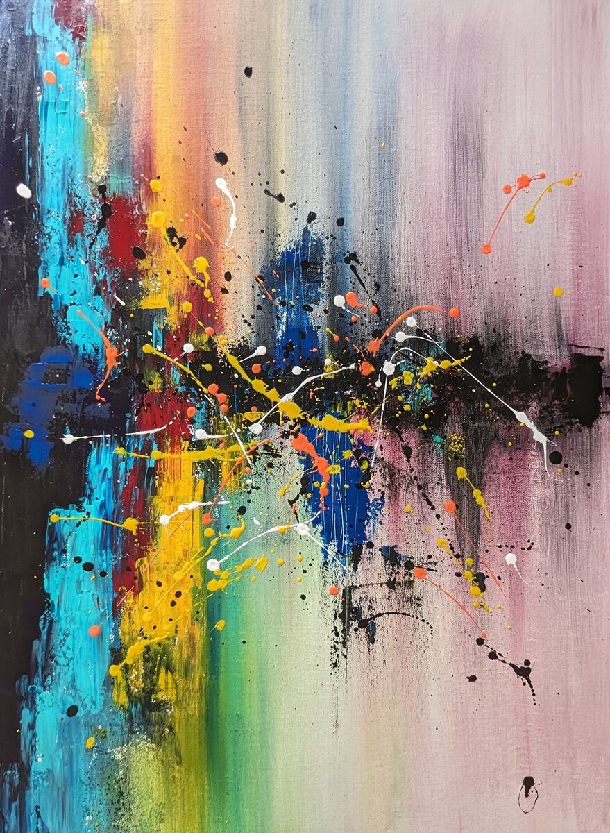 The palette knives were called back into action for this piece. Starting with strong, colours and a thick layer letting it fade on the canvas.