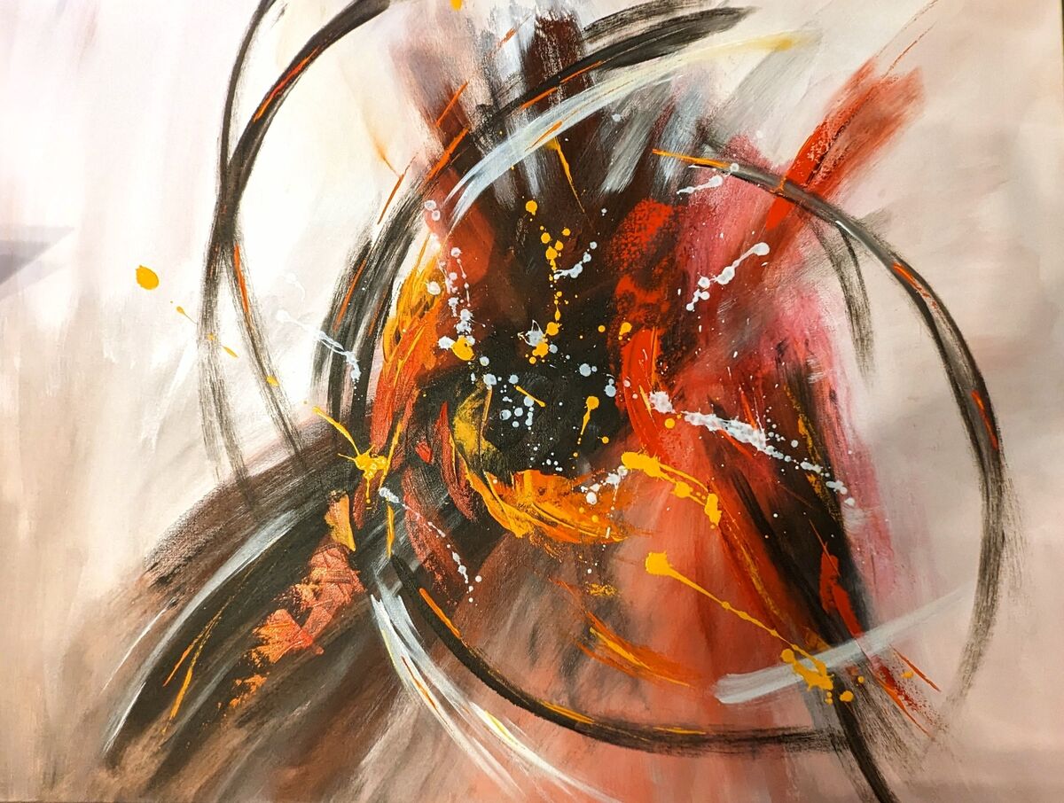 To the stars and back. Only focus is the line created with the palette knives. The space around blends (like in so many Syfy programmes) like when traveling at "Warp Speed"