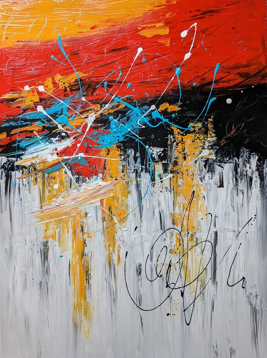 Today was a day where I needed to bring a lot of paint to canvas. Bright fresh colours, bold blocks, squiggles and splashes. Nothing orderly, simply a "Cacophony"