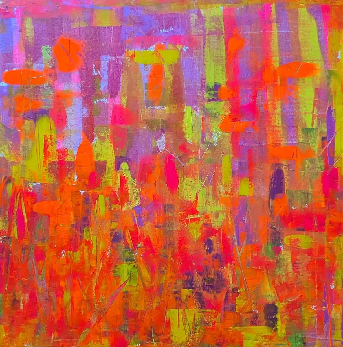 Trying a different colour combination for this painting. Neon orange and pink and pearlescent purple and yellow.